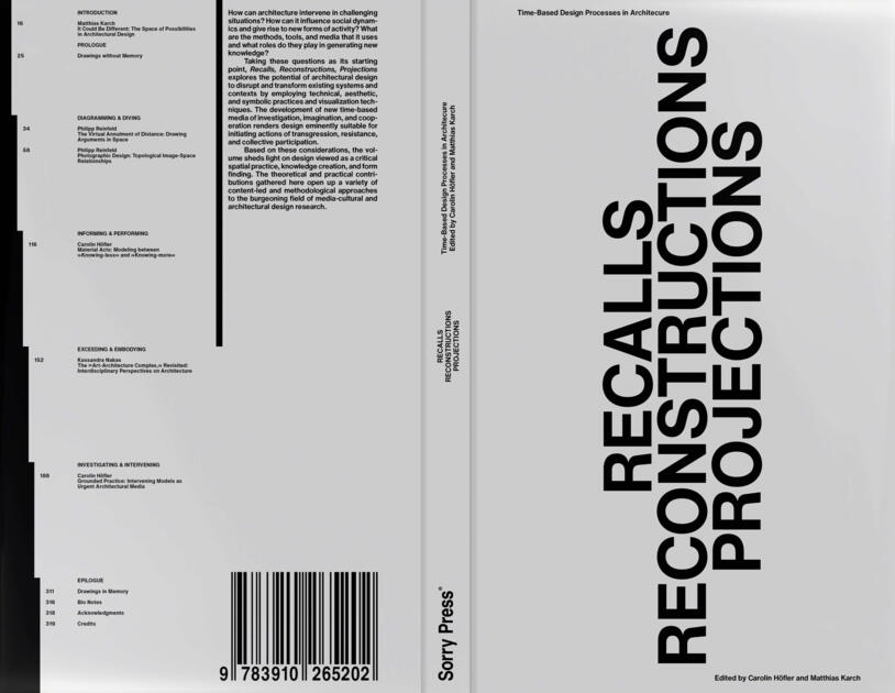 Taking these questions as its starting point, Recalls, Reconstructions, Projections explores the potential of architectural design to disrupt and transform existing systems and contexts by employing technical, aesthetic, and symbolic practices and visualization techniques. The development of new time-based media of investigation, imagination, and cooperation renders design eminently suitable for initiating actions of transgression, resistance, and collective participation.