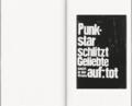 “Sinister curtains, a Velázquez Jesus, Tom-of-Finland gays, and headline snippets from the Bild newspaper over and over again: blah blah letters as punk rock riffs for synesthetes. By far the most charming artist book in a long time. Also works well as a delirious flip book.” Peter Richter (SZ)